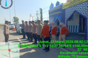 Probolinggo,Anggota Pos Pengamanan (Pos Pam) Leces dari Satlantas Polres Probolinggo melaksanakan kegiatan apel pagi yang dilanjutkan dengan pengaturan arus lalu lintas di wilayah Pos Pam Leces, Jumat pagi. (13/03/26)