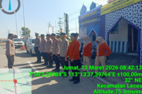 Usai apel, anggota langsung menempati sejumlah titik strategis di kawasan Leces untuk melaksanakan pengaturan arus lalu lintas serta membantu masyarakat yang melintas, termasuk para pelajar dan pekerja yang memulai aktivitas pagi.