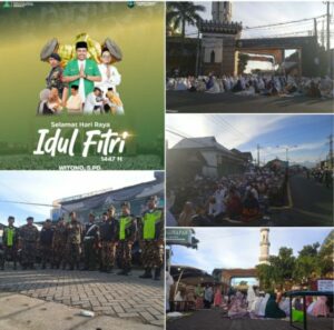 3 Pilar menjalin kerja sama TNI,POLRI,BANSER ikut andil dalam pengamanan Sholat idulfitri yang diselenggarakan di Masjid Besar Al Mukhlasin Sukorejo,