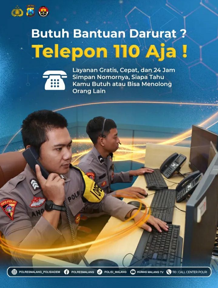 BUTUH BANTUAN DARURAT? HUBUNGI 110! LAYANAN POLISI 24 JAM SIAP MELAYANI MASYARAKAT SECARA GRATIS
