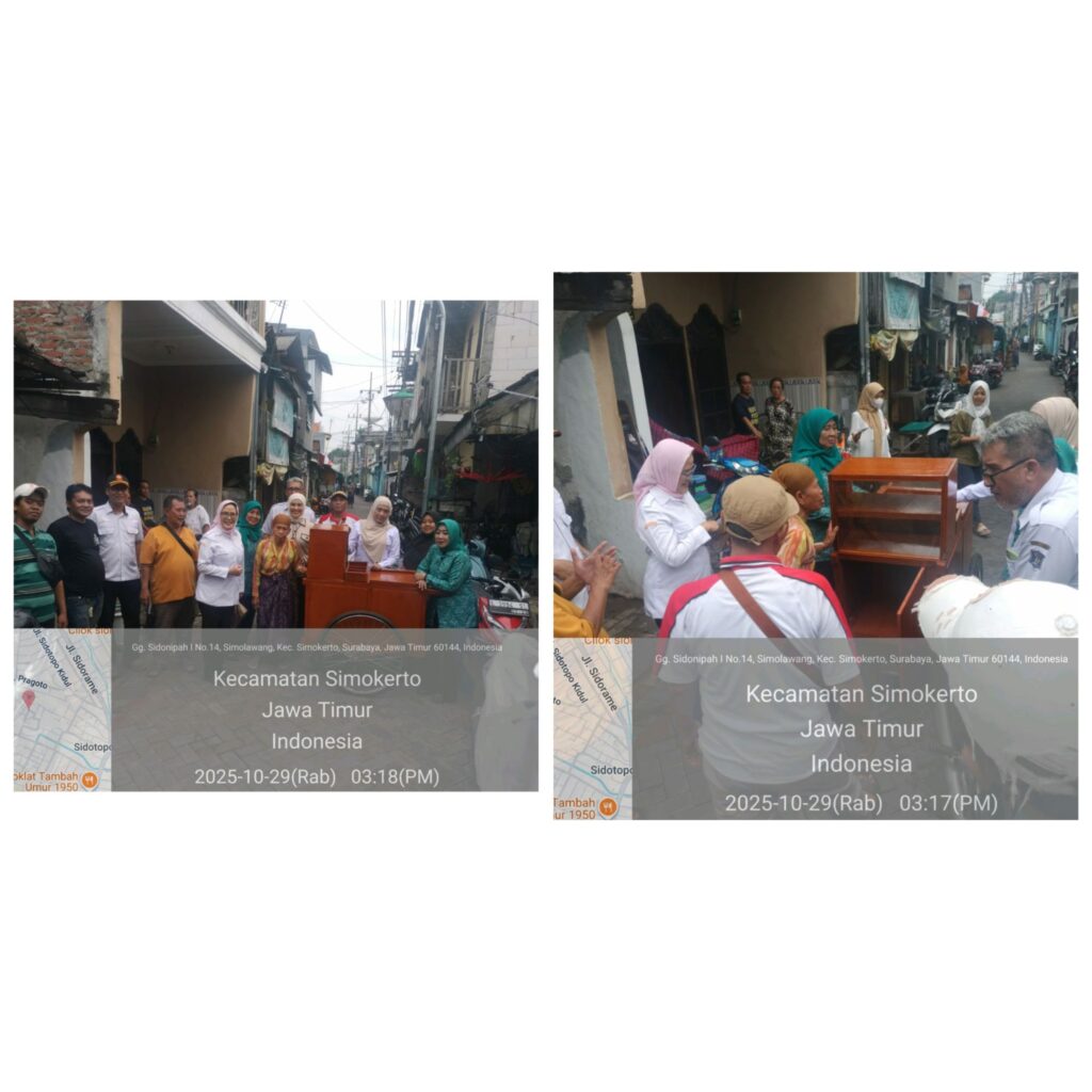 Surabaya. beritakabar terkini.com.Dalam upaya memperkuat nilai-nilai gotong royong dan kemandirian warga, Kecamatan Simokerto menyerahkan bantuan berupa rombong usaha kepada salah satu warga Kelurahan Simolawang, Runa, yang beralamat di Sidonipah I/12. Bantuan ini merupakan hasil swadaya Kecamatan Simokerto sebagai bentuk nyata dukungan terhadap program Kampung Pancasila.(29/10)