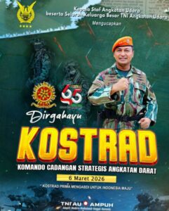 Jakarta, 6 Maret 2026 – Dalam momen perayaan Hari Jadi Komando Cadangan Strategis Angkatan Darat (KOSTRAD) yang jatuh pada tanggal 6 Maret 2026, Kepala Staf Angkatan Udara (KSAU) beserta seluruh keluarga besar Tentara Nasional Indonesia Angkatan Udara (TNI AU) mengucapkan ucapan selamat dan dirgahayu yang hangat kepada seluruh jajaran KOSTRAD dan keluarga besar Tentara Nasional Indonesia Angkatan Darat (TNI AD).