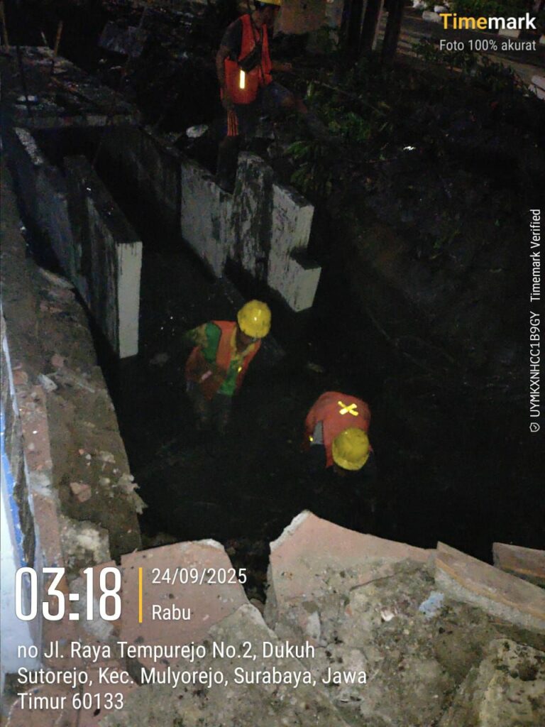 Sistem drainase sementara tidak berfungsi baik. Akibatnya, air Saluran menggenang dan mengganggu aktivitas Kesulitan dalam bekerja.