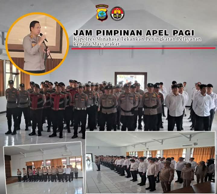 Kabupaten Minahasa – Kapolres Minahasa AKBP Stevent J.R. Simbar, S.I.K. secara langsung memimpin kegiatan Jam Pimpinan yang digelar pada hari Senin, 09 Maret 2026 di Aula Tansatrisna Polres Minahasa. Kegiatan yang dihadiri oleh para Pejabat Utama, perwira, bintara, serta Aparatur Sipil Negara (ASN) Polres Minahasa ini menjadi wadah untuk menyampaikan arahan penting terkait perbaikan kualitas pelayanan kepada masyarakat di wilayah Kabupaten Minahasa.
