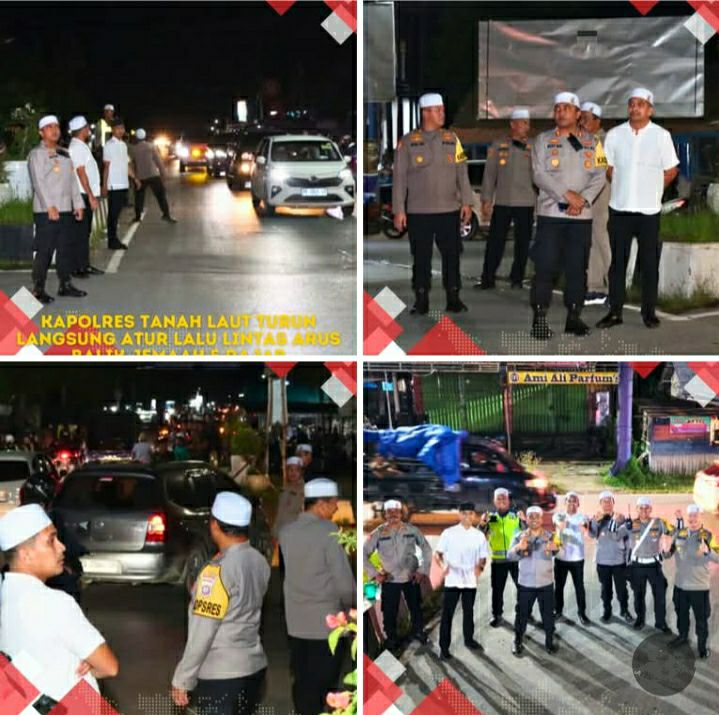 Tanah Laut – Kapolres Tanah Laut AKBP Ricky Boy Siallagan, S.I.K., M.I.K., turun langsung ke lapangan untuk melakukan pengaturan lalu lintas arus balik jemaah dalam rangka momentum peringatan 5 Rajab, bertempat di Simpang Tiga Bentok, Kecamatan Bati-Bati, Kabupaten Tanah Laut, Minggu (28/12) malam. Kehadiran langsungnya di lokasi menjadi bukti komitmen Polres Tanah Laut dalam memberikan pelayanan terbaik dan menjaga keamanan serta ketertiban pada momen kegiatan keagamaan yang melibatkan mobilitas massa.