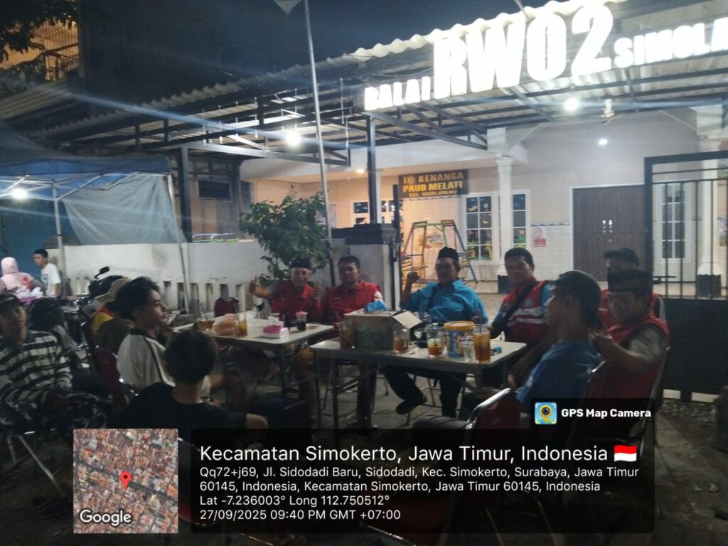 Surabaya – Suasana kebersamaan dan semangat gotong royong tampak jelas di Kampung RW 2 Simolawang, Kecamatan Simokerto, Surabaya. Pada Sabtu (27/9), Karang Taruna RW 2 bersama para pemuda RT 3 dan RT 5 kembali melakukan patroli keliling kampung hingga ke Polsek Simokerto. Kegiatan ini rutin dilakukan sebagai bentuk nyata kepedulian mereka terhadap keamanan dan kenyamanan warga.
