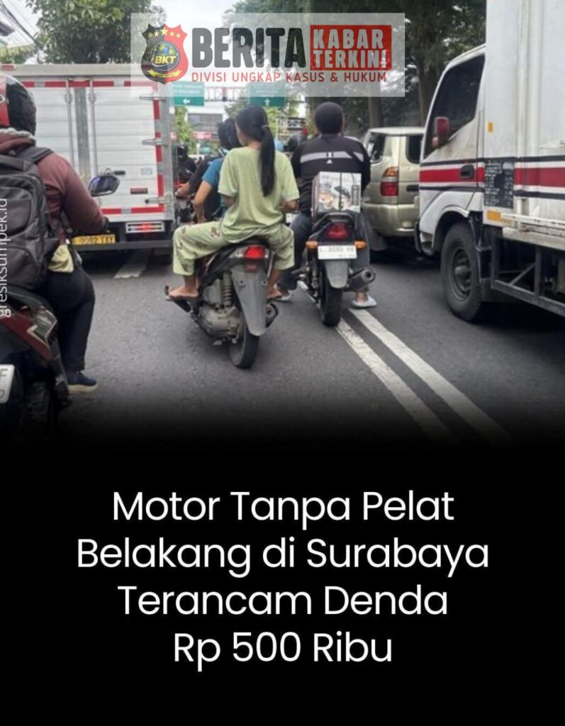 Surabaya, Jawa Timur – 26 Januari 2026 – Fenomena kendaraan bermotor tanpa pelat nomor belakang masih kerap mengganggu ketertiban lalu lintas di berbagai ruas jalan Kota Surabaya. Kondisi ini menjadi perhatian serius bagi pihak berwenang karena tidak hanya menyalahi peraturan lalu lintas, melainkan juga berpotensi menjadi sarana untuk melakukan tindak pidana lain seperti pencurian kendaraan atau pelanggaran hukum yang lainnya.