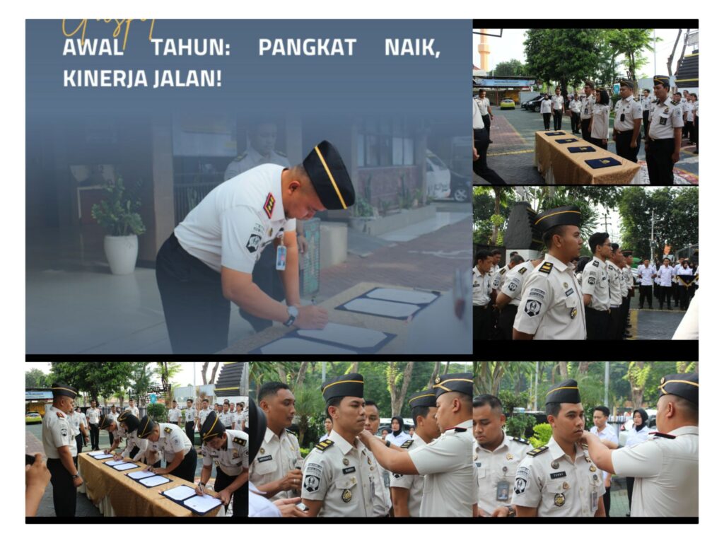 Acara diakhiri dengan foto bersama seluruh peserta serta penyerahan ucapan selamat kepada para pegawai yang menerima kenaikan pangkat, dengan semangat baru untuk menjalankan tugas di tahun 2026 dengan tema kerja “Setahun Bekerja, Bergerak – Berdampak”. Dikeluarkan oleh: Lembaga Pemasyarakatan Kelas IIA Sidoarjo