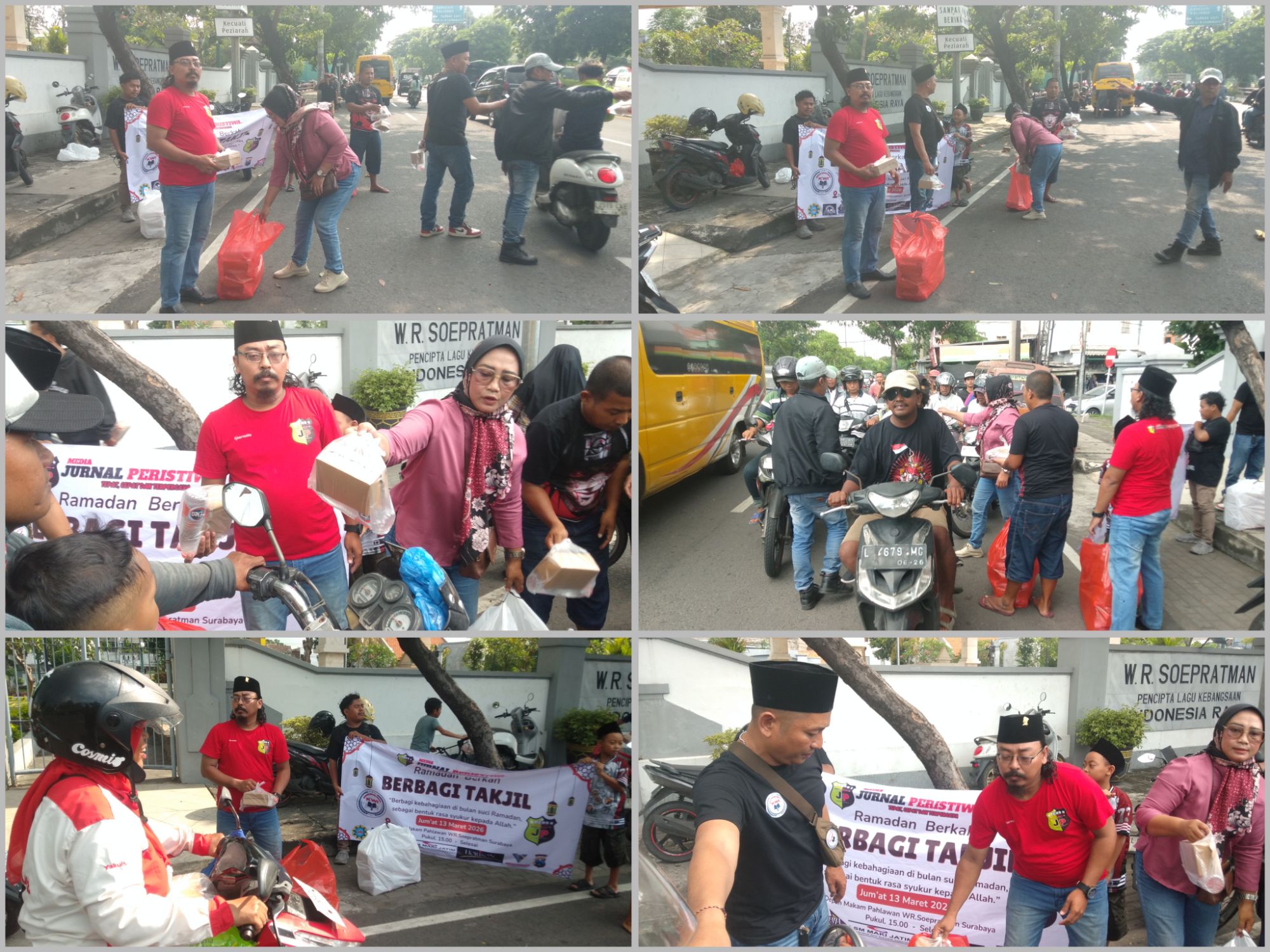 Surabaya – Dalam rangka menyemarakkan bulan suci Ramadan yang penuh berkah, Media Jurnal Peristiwa menggelar kegiatan sosial bertajuk “Ramadan Berkah Berbagi Takjil” di depan kawasan Makam Pahlawan WR Soepratman. Kegiatan ini menjadi wujud kepedulian sekaligus bentuk rasa syukur dengan berbagi kepada masyarakat yang sedang menjalankan ibadah puasa.