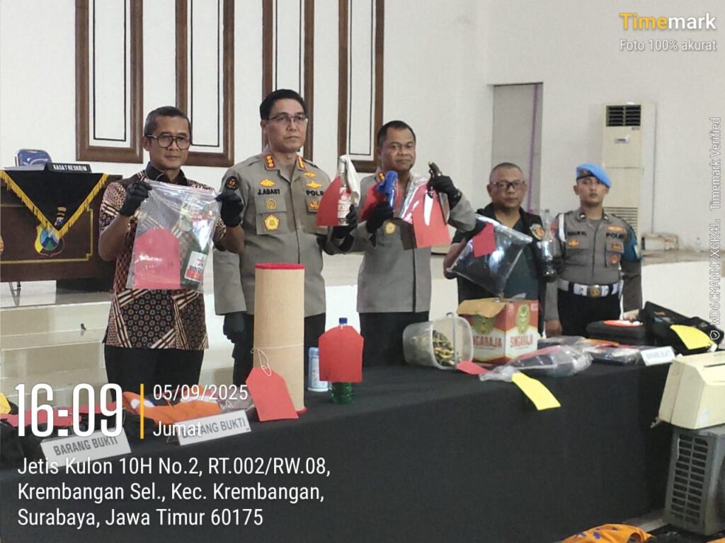 “Khusus perkara yang ditangani oleh Polrestabes Surabaya, para tersangka dikenakan 8 pasal. Yaitu pasal 406 KUHP, pasal 363 KUHP, pasal 212 KUHP, pasal 187 KUHP, pasal 170 KUHP, pasal 160 KUHP, UU Darurat No 12 Tahun 1951 pasal 1 dan pasal 2,” ujarnya.