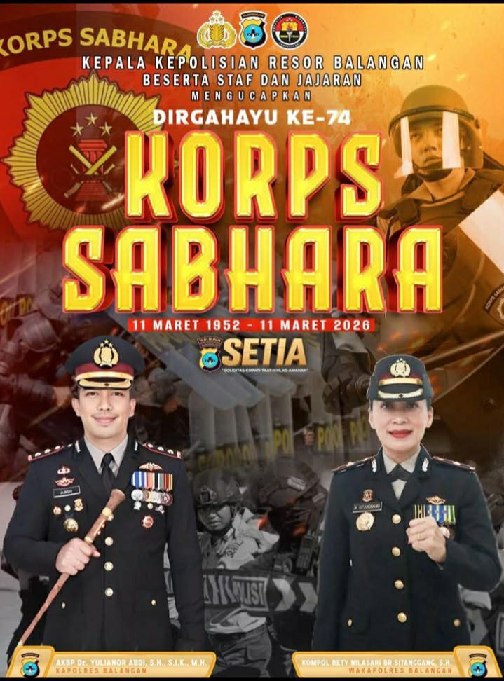 BALANGAN, KALIMANTAN SELATAN – Kepolisian Resor (Polres) Balangan menggelar rangkaian perayaan Dirgahayu Korps Sabhara ke-74, yang jatuh pada tanggal 11 Maret 2026. Dengan tema “SETIA” (Sungguh, Etis, Terampil, Amanah, dan Akuntabel), perayaan ini tidak hanya menjadi momen untuk mengenang sejarah dan perjuangan korps, tetapi juga untuk menegaskan komitmen terus melayani masyarakat dan menjaga keamanan serta ketertiban di wilayah Balangan.