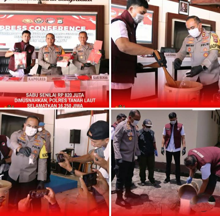 Setelah sesi Press Conference berlangsung dengan lancar dan diisi dengan sesi tanya jawab antara awak media dengan pihak Polres Tanah Laut, kegiatan dilanjutkan dengan proses pemusnahan barang bukti narkotika. Pada kesempatan ini, sebanyak 648,77 gram narkotika jenis sabu dimusnahkan secara terbuka sebagai bentuk nyata dari komitmen Polres Tanah Laut dalam memberantas peredaran gelap narkotika dan mencegah barang bukti tersebut kembali masuk ke dalam lingkungan masyarakat.
