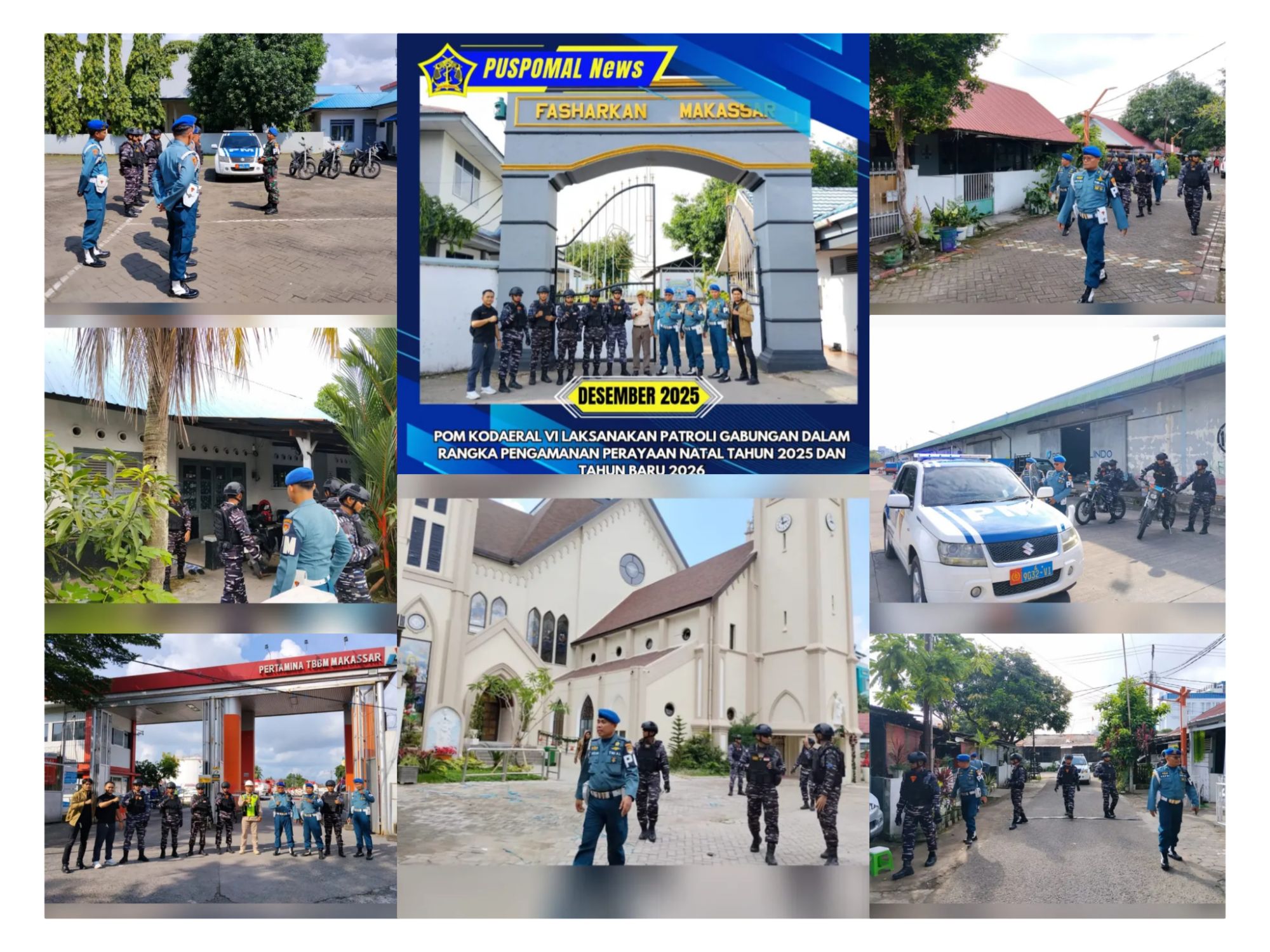 Makassar – Lebih dari sekadar patroli rutin, kehadiran Polisi Militer (POM) KODAERAL VI Makassar dalam pengamanan perayaan Natal 2025 dan Tahun Baru 2026 adalah wujud komitmen menjaga disiplin internal TNI AL sekaligus memberikan kontribusi nyata bagi keamanan dan ketertiban masyarakat luas. Patroli gabungan bersama Yonmarhanlan VI Makassar dan Tim Intel Mako KODAERAL VI pada Jumat (27/12/2025) bukan hanya menyasar gereja dan objek vital, tetapi juga kompleks perumahan dinas TNI AL, menegaskan fokus pada keamanan lingkungan internal.