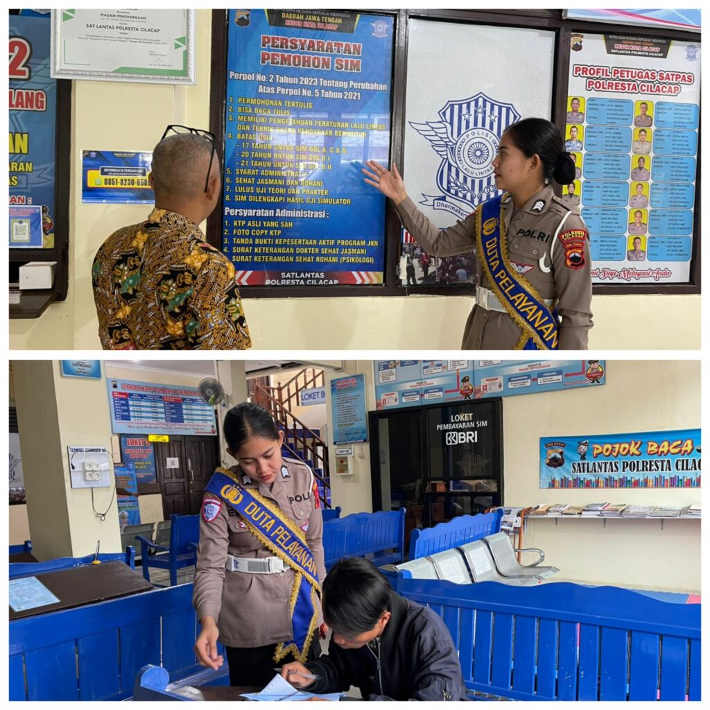 CILACAP – Satuan Penyelenggara Administrasi (Satpas) 1423 Polresta Cilacap terus menunjukkan komitmennya dalam memberikan pelayanan terbaik kepada masyarakat, khususnya bagi para pemohon Surat Izin Mengemudi (SIM). Salah satu bentuk pelayanan humanis tersebut terlihat dari sikap ramah dan bantuan aktif petugas dalam proses pengisian formulir pendaftaran SIM.