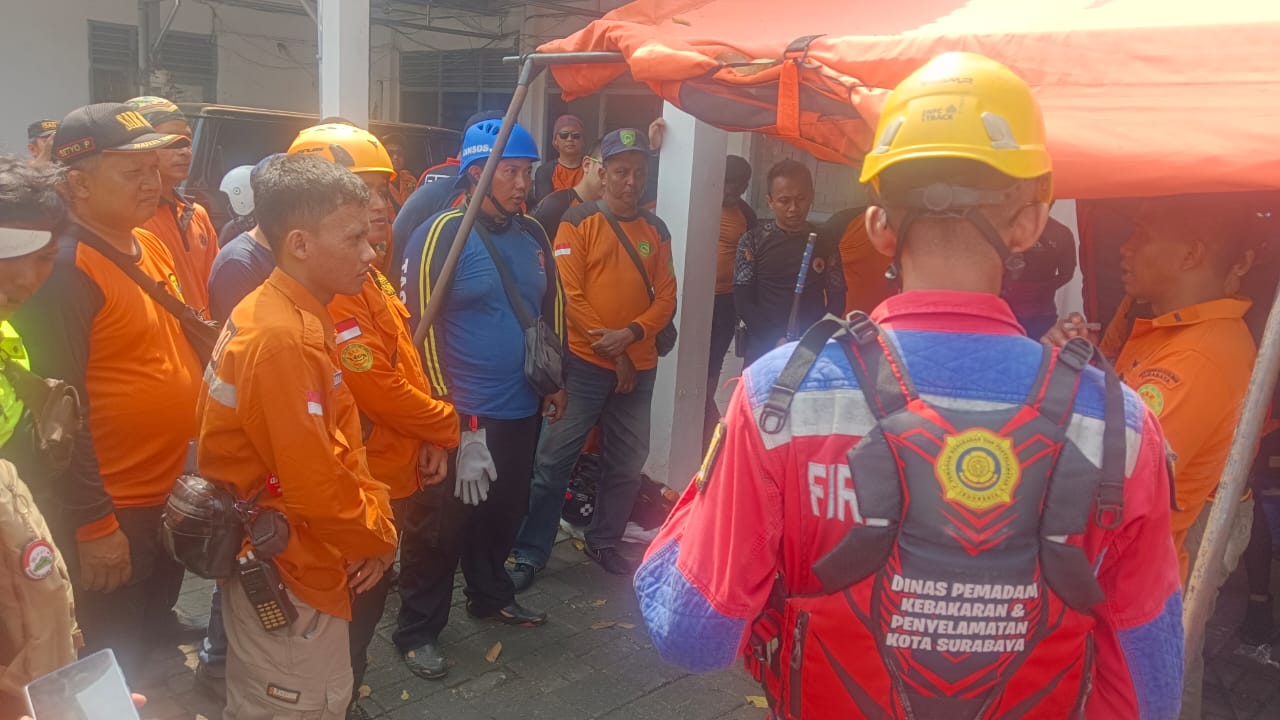 “Dua orang penyelam Satu orang dari BPBD Kota Surabaya dan Satu orang dari Basarnas Surabaya melakukan penyelaman di sekitar lokasi kejadian hingga sekitar 150 meter ke arah Rel kereta api” tambah Komandan Tim dari Basarnas Surabaya Gani Wiratama.