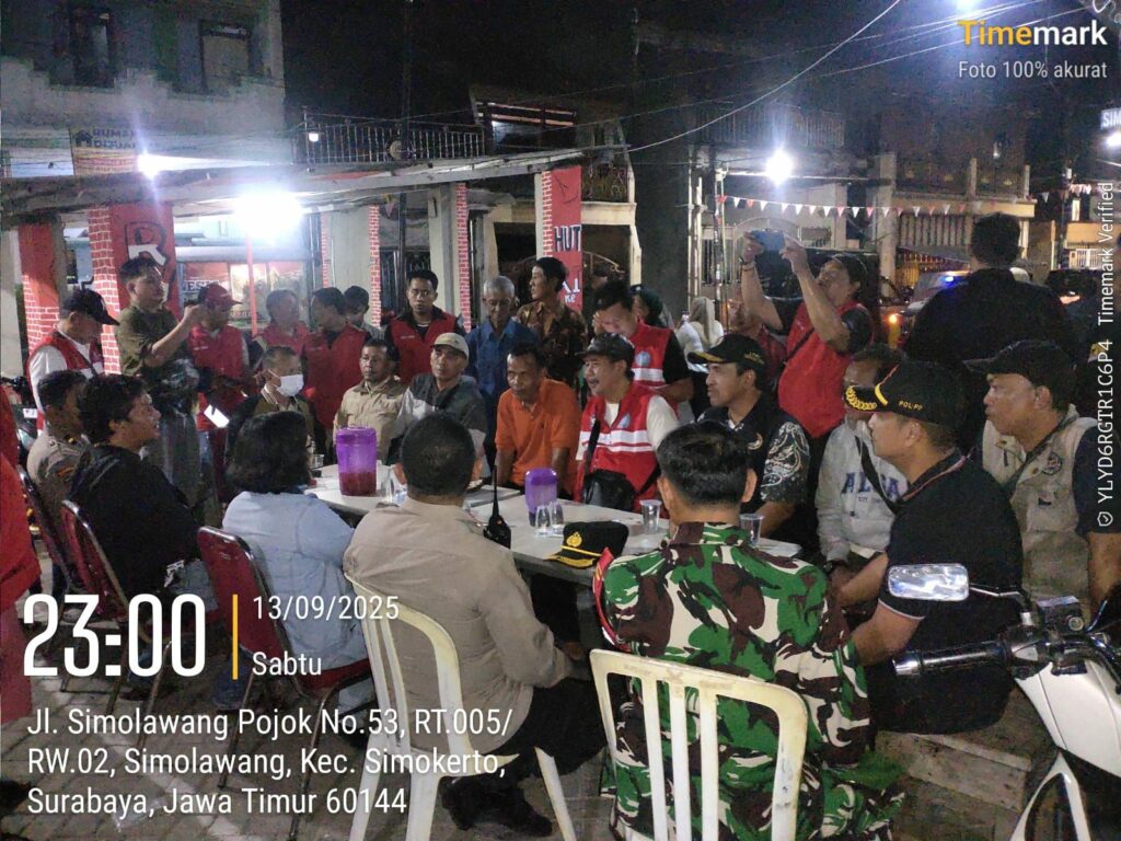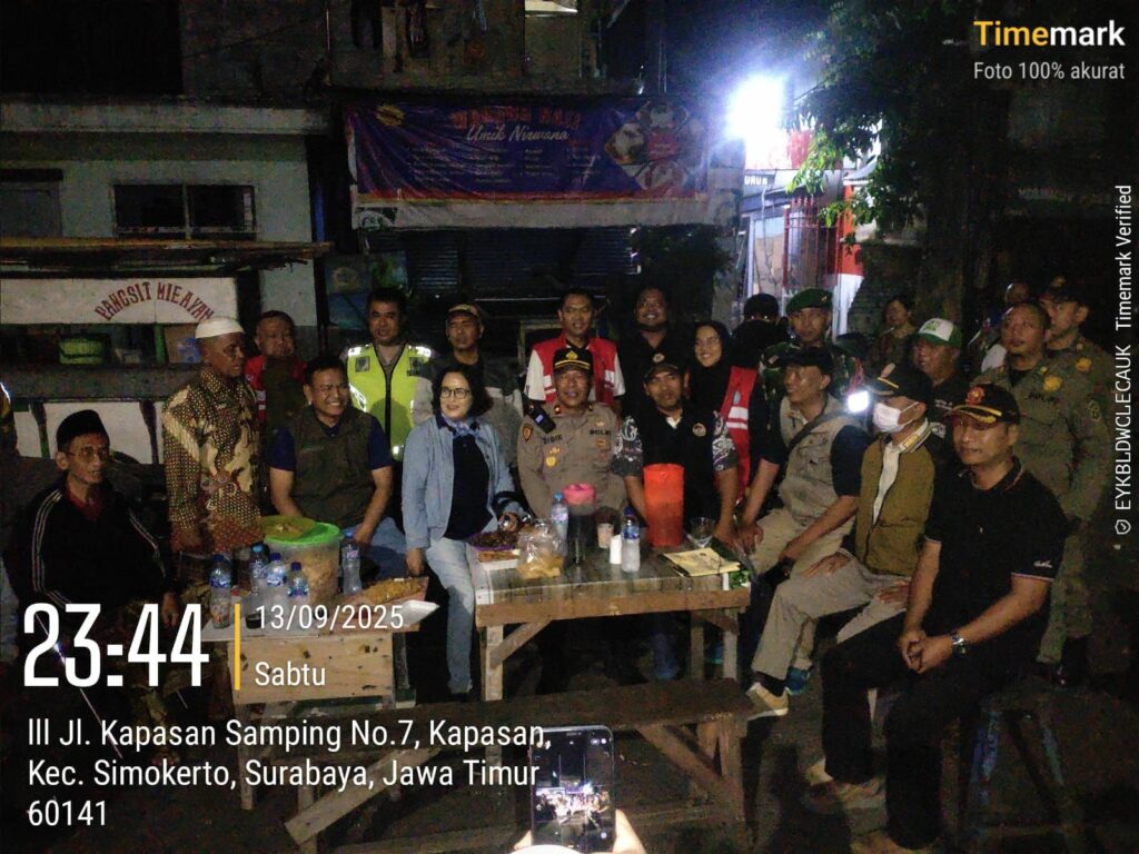 Surabaya – BERITAKABARTERKINI.CIM.Tiga pilar Kecamatan Simokerto yang terdiri dari unsur pemerintah, kepolisian, dan TNI melaksanakan kegiatan Asuhan Rembulan Tilik Siskamling pada Sabtu malam (13/9). Kegiatan ini menjadi bentuk nyata kepedulian terhadap keamanan dan ketertiban masyarakat (kamtibmas) dengan melakukan kunjungan ke sejumlah pos kamling di wilayah Simokerto, Surabaya.